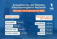 Situación del Sistema Electroenergético Nacional para este miércoles 10 de diciembre