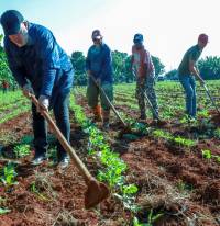 Junto a trabajadores del Palacio de la Revolución, el primer ministro, Manuel Marrero Cruz, se sumó a las labores productivas de este domingo en la finca de cultivos varios El Chico, ubicada en el capitalino municipio de Boyeros