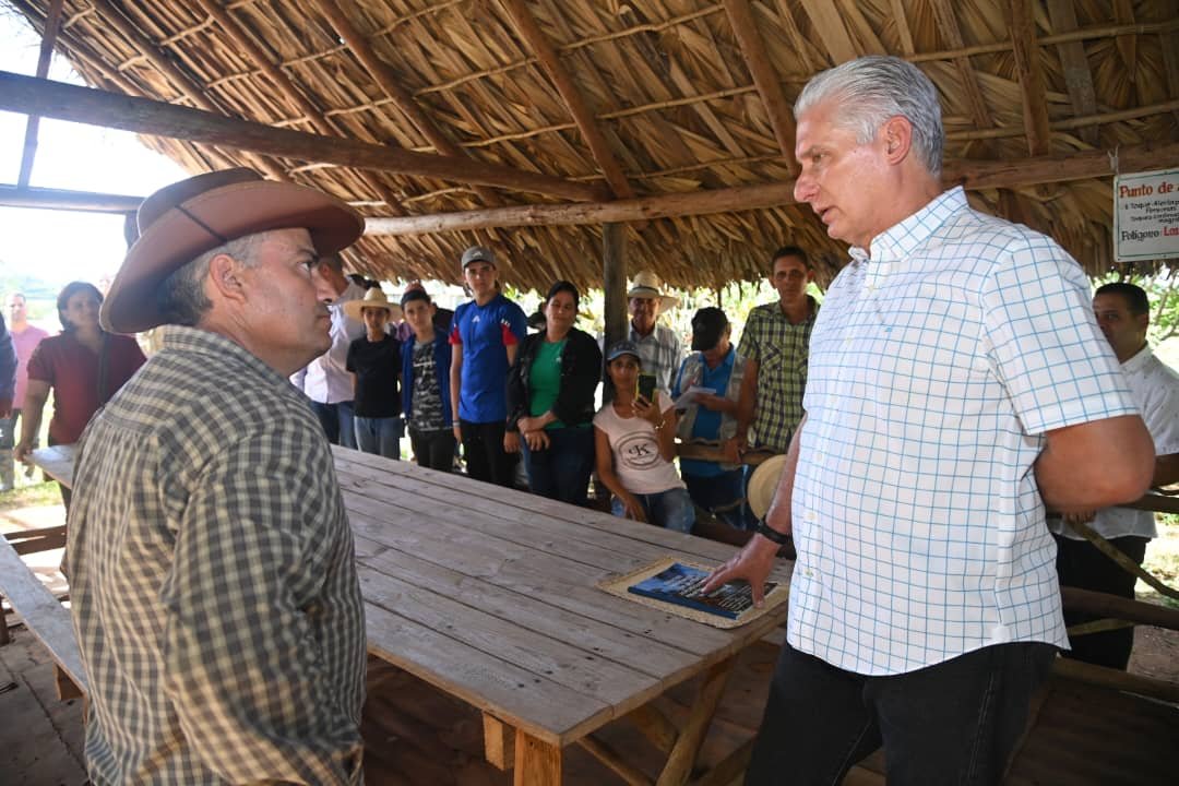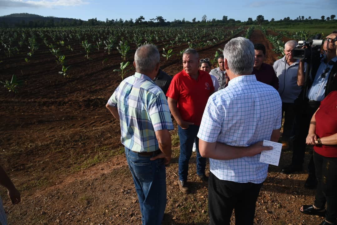 En Minas de Matahambre, territorio ubicado al norte de la provincia más occidental de Cuba, siempre acompañado por Yamilé Ramos Cordero, primera secretaria del comité provincial del Partido, y Eumelín González Sánchez, gobernador del territorio, el Jefe de Estado visitó también áreas de la Empresa Municipal Ganadera dedicadas a la siembra de cultivos varios, fundamentalmente plátano.