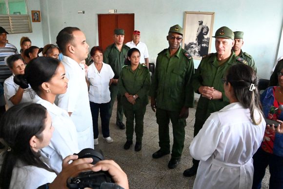 Luego Díaz-Canel se trasladó a Sagua de Tánamo, otro de los municipios holguineros golpeados por la furia del huracán. Estuvo en el puente sobre el río Sagua, que resistió la gran crecida, pero donde colapsaron tres pozos de agua, ubicados en sus márgenes.