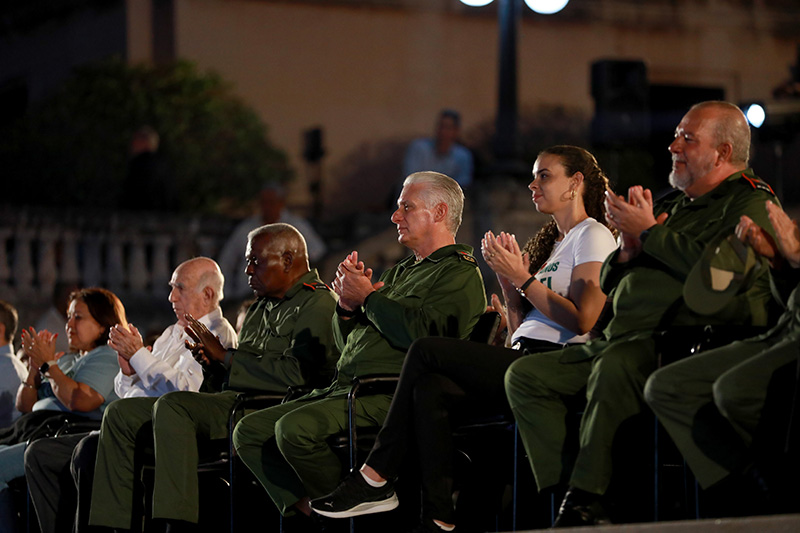 Como cada año, a los pies de la escalinata, y junto a los jóvenes, se encontraba el Primer Secretario del Comité Central del Partido y Presidente de la República, Miguel Díaz-Canel Bermúdez, para homenajear al Líder Histórico de la Revolución cubana durante la tradicional velada político-cultural por el 9no. aniversario de su desaparición física.