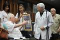El Doctor Armando Hart Dávalos, presidente de la Sociedad Cultural José Martí, entregó el reconocimiento al Doctor en Ciencias Manuel Cepero Nogueiras, profesor y director del Centro de Investigaciones Médico Quirúrgicas