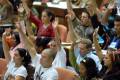 En la apertura de la sesión plenaria del IX Congreso de la UJC, presidida por el presidente cubano Raúl Castro, se presentaron los resúmenes del trabajo de las cinco comisiones del evento