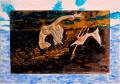 Carlos Guzmán, en sus pinturas pasea de un tono a otro, logrando una armonía entre las figuras y los espacios que las contienen