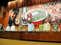 Asistió Raúl a los debates en Plenaria. Los delegados regalaron a Fidel y al Presidente de los Consejos de Estado y de Ministros un cuadro realizado por el artista Dausel Valdés, que recrea el paisaje, en Pinar del Río, donde nació Lina Ruz, la madre de ambos líderes de la Revolución
