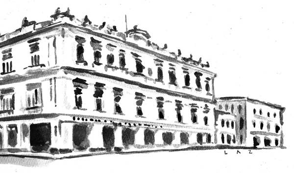 «Salimos de la calle de la Muralla, donde los comerciantes estaban a las puertas de las tiendas en mangas de camisa, sin vender tal vez por ser domingo, y nos encaminamos hacia el Parque Central», dice el español en la primera de sus crónicas cubanas, escrita en vísperas de su viaje a la trocha de Júcaro a Morón. Le parece hermoso el Parque Central. Su entorno es de maravilla. Coinciden en sus alrededores los teatros Tacón, Albisu y Payret. También lo que sería la Manzana de Gómez y el Diario de la Marina —en el edificio del hotel Plaza— y frente a este, el lujoso Unión Club.