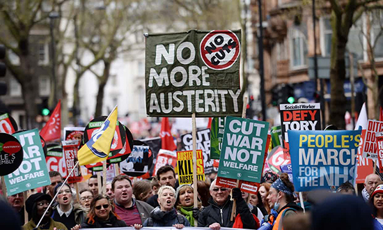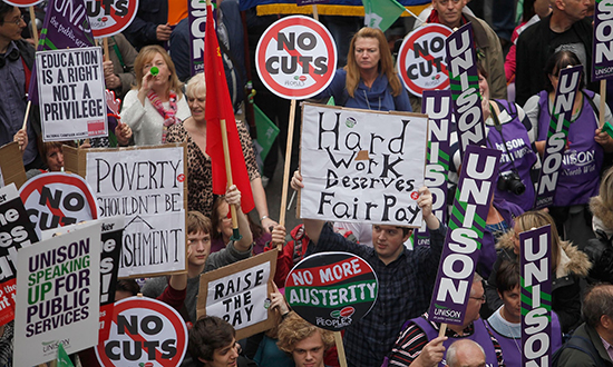 Hubo protestas en Londres porque el Parlamento llevaría a debate la política salarial para los empleados públicos que bajo la austeridad impuesta para enfrentar la crisis económica hizo que se impusiera un tope a ese amplísimo sector laboral.