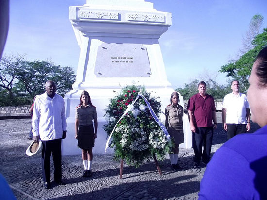 En una ceremonia en la que se dedicaron versos, danzas y canciones al más universal de los cubanos y que estuvo presidida por las máximas autoridades del Partido y el Gobierno en la provincia, fueron depositadas ante el Mausoleo martiano ofrendas florales a nombre del líder histórico de la Revolución, Fidel Castro; del General de Ejército Raúl Castro, de los Consejos de Estado y de Ministros, y del pueblo de Cuba.