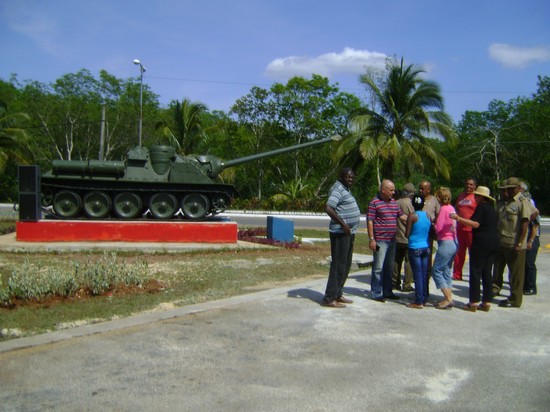 PLAYA LARGA, Ciénaga de Zapata, Matanzas.— Una instalación monumentaria fue inaugurada en el entronque de Playa Larga. Se trata de un cañón autopropulsado Sau 100 (original), que constituirá un homenaje perenne a todos los héroes y mártires que hicieron posible la victoria de Playa Girón, guiados por Fidel, dijo emocionado el teniente coronel (R) Joel Pardo Guerra, tanquista en los momentos de la aquella gesta.