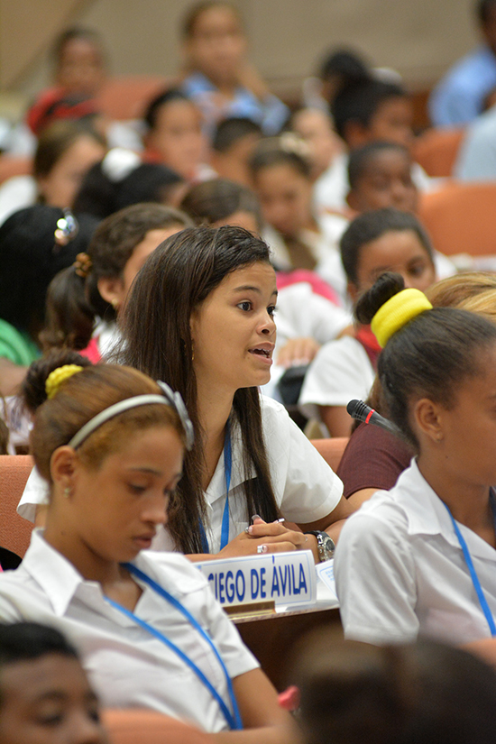 Cecilia es una de las delegadas más pequeñas, pero grande fue su emoción cuando felicitó a Fidel, El Pionero Mayor, y juró en nombre de los pioneros el compromiso de ser dignos continuadores de la obra de la Revolución. Igual lo hizo el granmense Adán Calero, quien mostró en sus palabras el orgullo que siente de vivir en la Sierra Maestra. También se refirió a la importancia de la formación vocacional, la necesidad de formar maestros, y la responsabilidad que tienen ellos como pioneros de esforzarse más en el estudio.