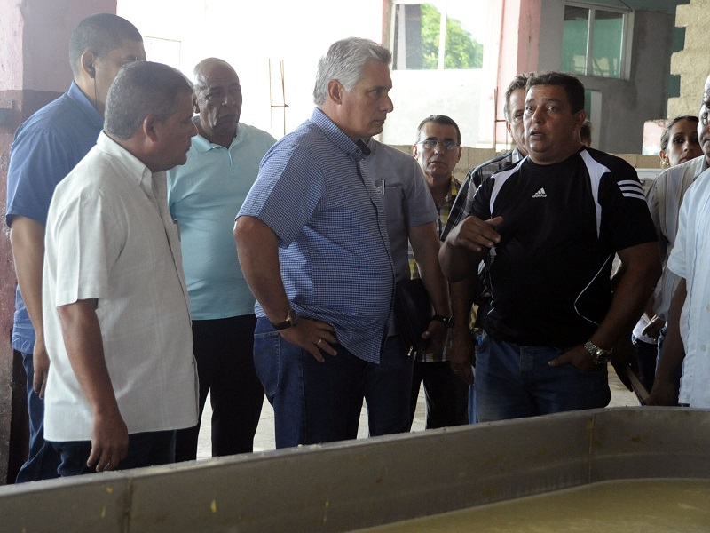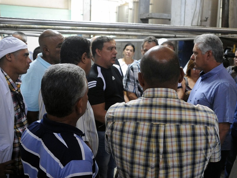 Presidente cubano recorre la Unidad Empresarial de Base Pasteurizadora Santa Clara Foto: Angélica Paredes