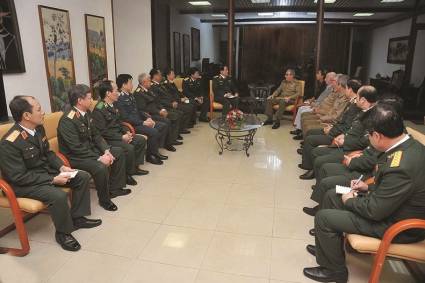 El General de Ejército Raúl Castro Ruz, Primer Secretario del Comité Central del Partido Comunista de Cuba, recibió en la tarde de este miércoles al Coronel General Luong Cuong, miembro del Secretariado del Comité Central del Partido Comunista de Vietnam y jefe de la Dirección General de Política del Ejército Popular de esa hermana nación, y a la delegación que lo acompaña, quien realiza una visita oficial a nuestro país invitado por el Ministerio de las Fuerzas Armadas Revolucionarias.