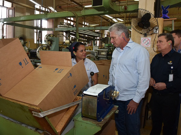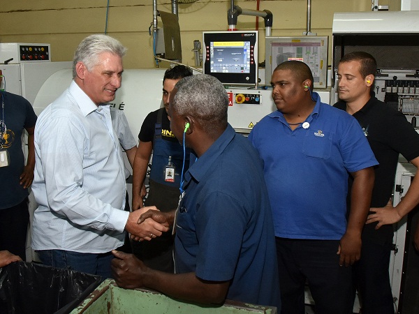 Hasta allí llegó Díaz-Canel, en la mañana de este jueves. En la empresa cuyo lanzamiento tuvo lugar en 1996, cuyo número de empleados asciende a más de 600, y cuyos puntos de ventas suman más de 7 000, los anfitriones hicieron énfasis en propósitos como la fabricación competitiva, la reducción de los costos, la calidad de las producciones, así como una estrategia de exportación sostenible.