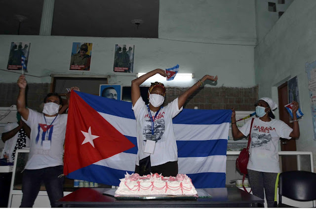 «Estas imágenes son del Consejo Popular Catedral en La Habana Vieja. Ellos celebran hoy desde sus casas. A las 8 entonaron las notas del Himno Nacional»