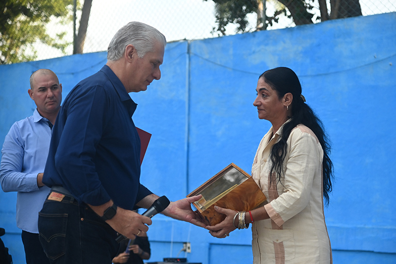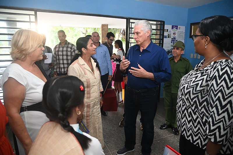 “Buenos días a todo el colectivo de maestros, de la escuelita, y también al colectivo de pioneros. Nosotros les habíamos explicado a la ministra de Educación que queríamos visitar en particular la escuela”.