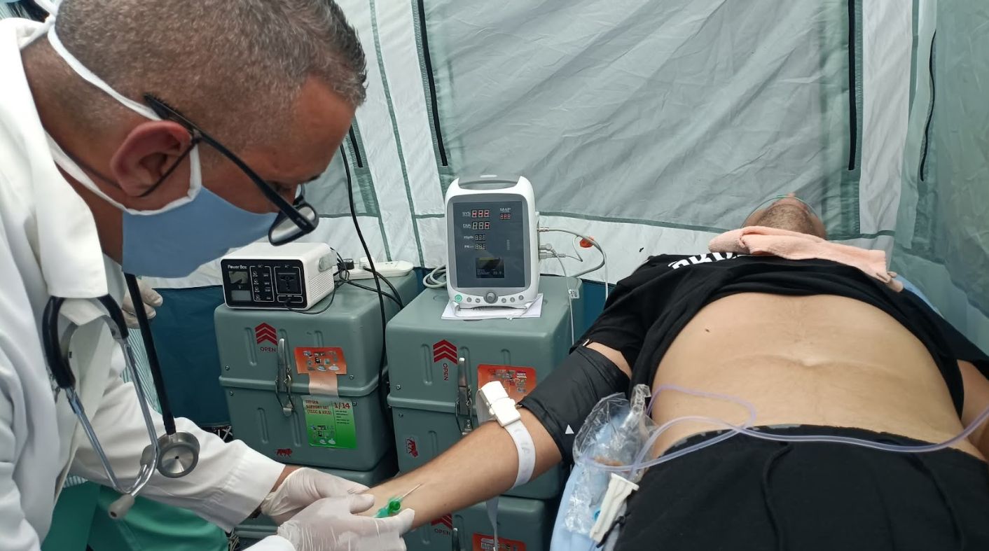 «Hemos conformado cuatro equipos de trabajo que laboran de manera rotatoria», explica Adonis. «El hospital trabaja las 24 horas del día. Vamos a estar aquí hasta que sea necesario», agrega. Cada equipo incluye ocho especialistas, cuatro enfermeros, un licenciado en Radiología y un licenciado en Laboratorio. Ellos atendieron a más de 120 pacientes en las primeras 72 horas.