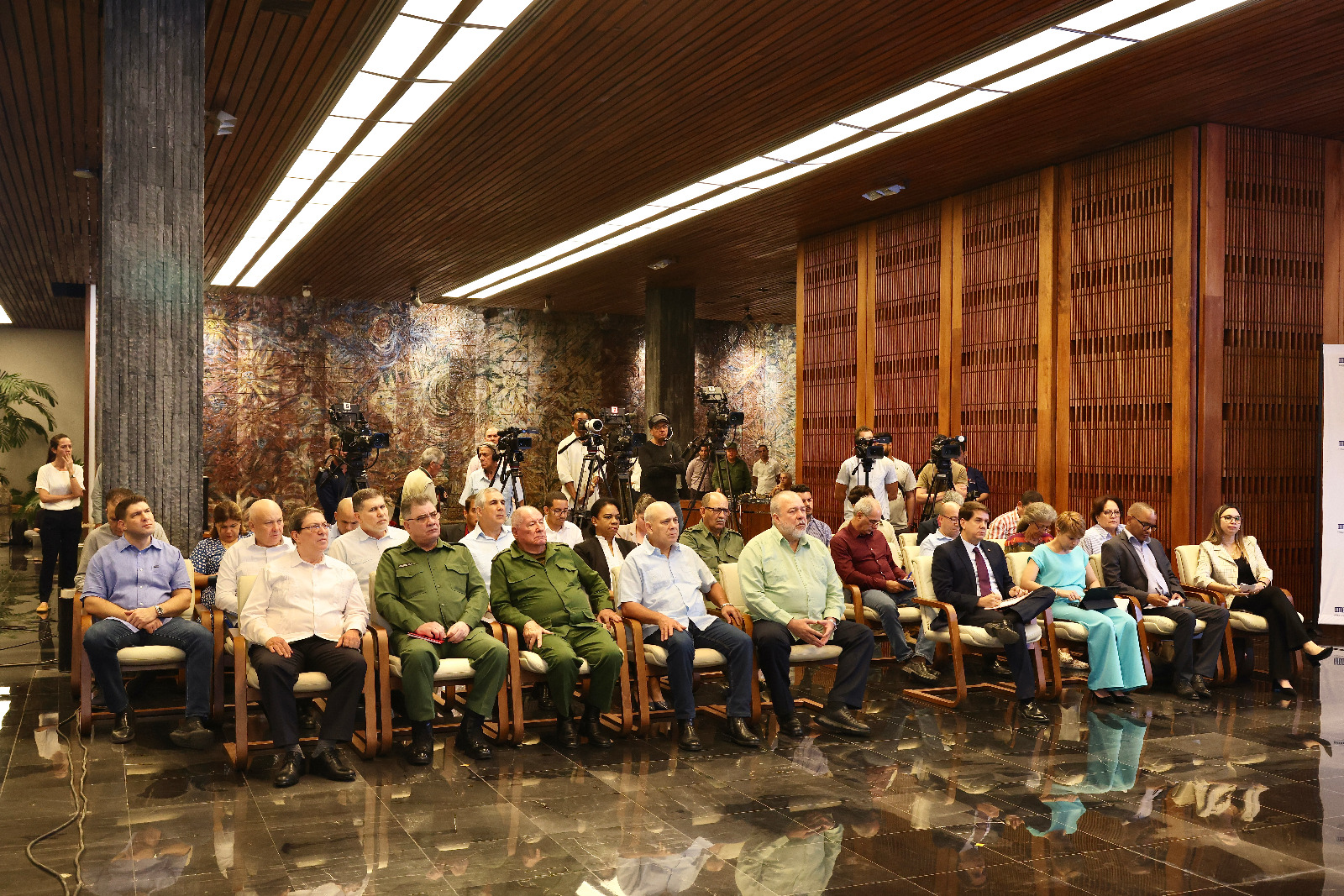 Quiero explicar que también con nosotros están compartiendo este encuentro varios miembros del Buró Político, el primer ministro Manuel Marrero, el miembro del Buró Político Roberto Morales Ojeda, nuestros ministros de las Fuerzas Armadas Revolucionarias y el Ministerio del Interior, nuestro Canciller, y también un grupo de compañeros, los vice primeros ministros y miembros del Comité Ejecutivo del Consejo de Ministros, que son varios de los compañeros que van a dar explicaciones, dándoles continuidad a todos estos temas la próxima semana, junto a un grupo de ministros.