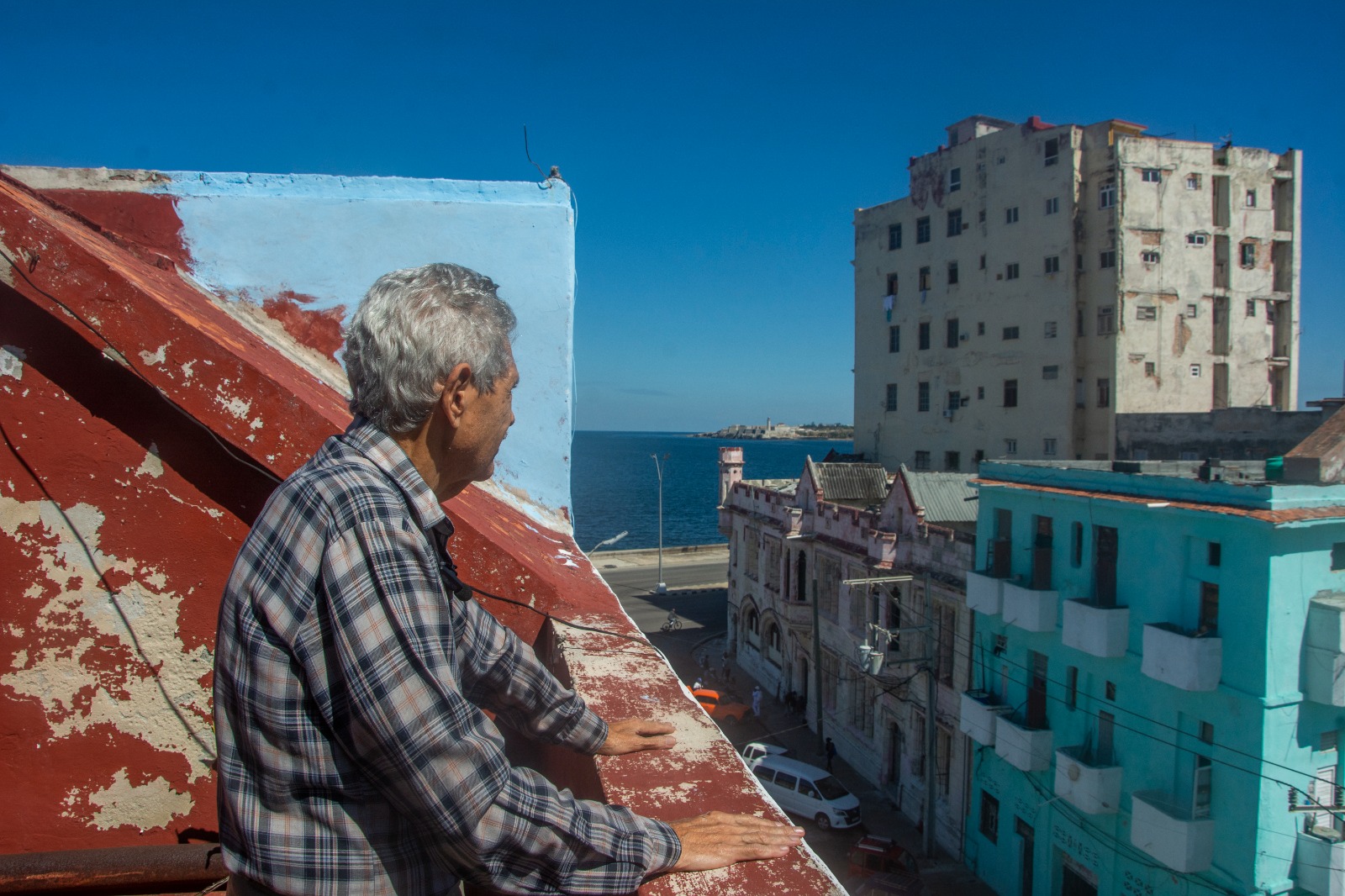 Aprovecho el tiempo para recorrer la casa, último piso de un discreto edificio de Centro Habana, cuya cercanía al malecón le ha sacado sus intestinos herrumbrosos. «El salitre acaba con todo» —me señala la cornisa del comedor, de paredes descorchadas y cabillas expuestas— al menos el techo no se filtra aún.