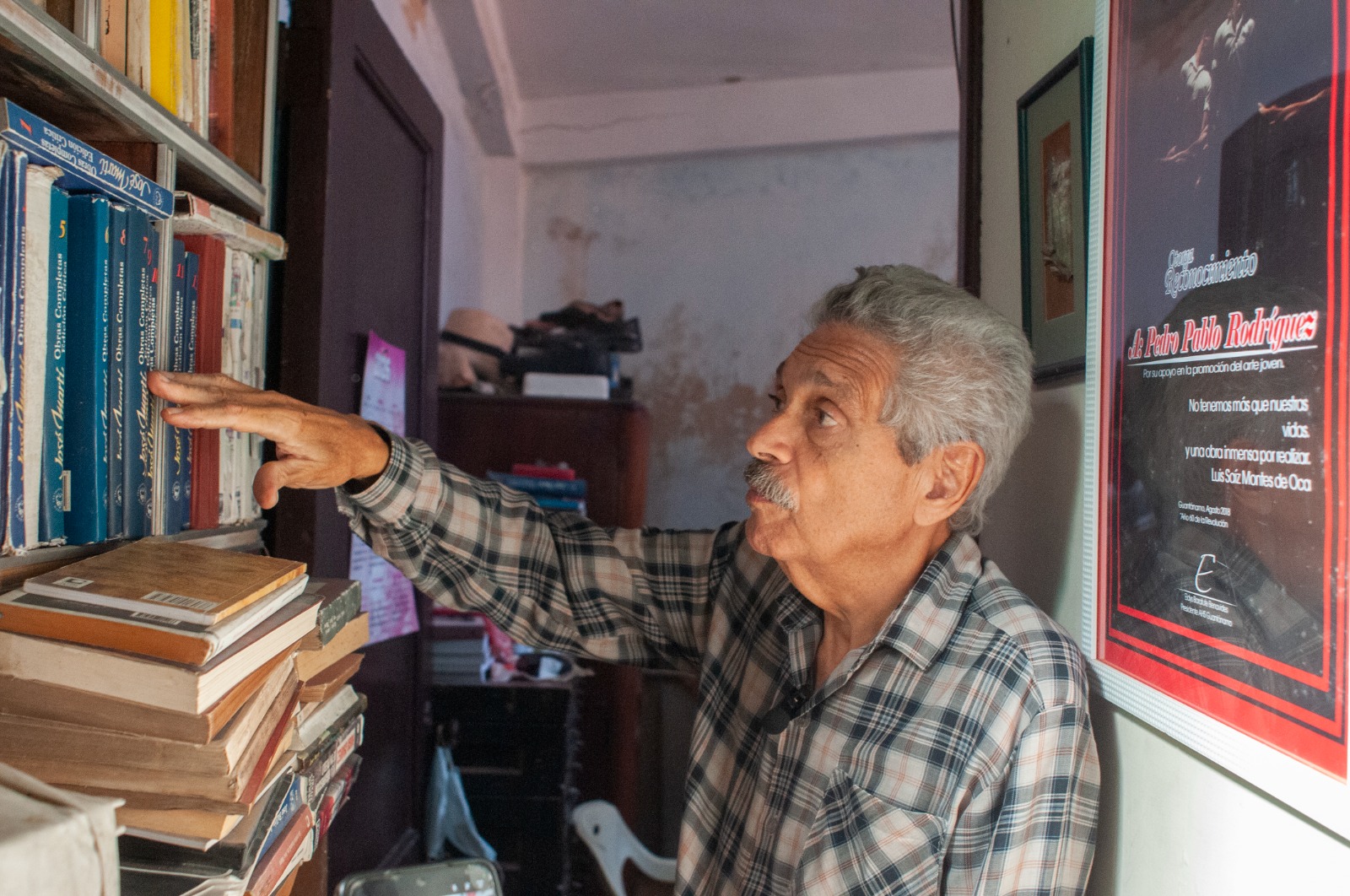 «Aunque me dio pena por su economía, me alegró mucho que no lo haya podido vender», comenta, y poco después me enseña otras representaciones más discretas a lo largo de una casa desprovista de lujos, pero abundante, sobre todo, en libros.