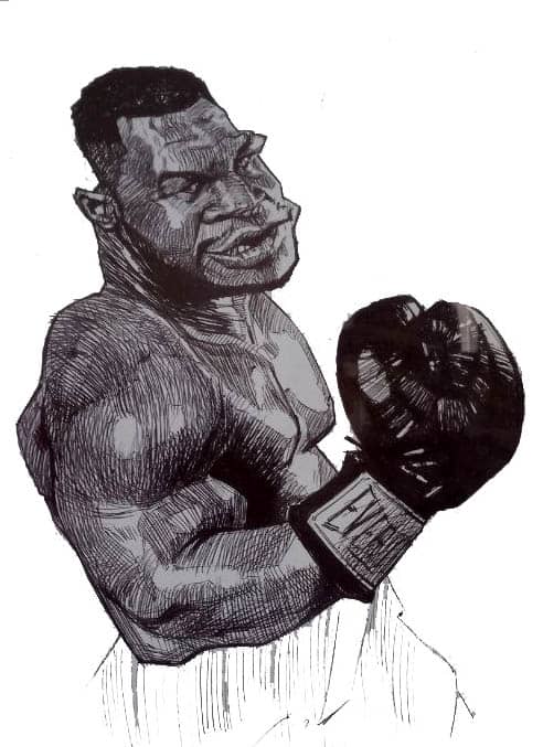 Mención en caricatura personal a la obra Mike Tyson, de Jorge Alejandro Guerra Salomó.