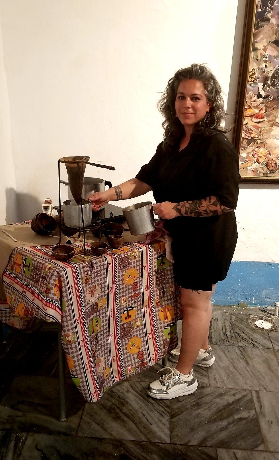 «El día de la inauguración quise trasladar a los asistentes al campo, y nada mejor para ello que ofrecerles café, colado ahí mismo con la tetera tradicional, para beberlo en una güira, aludiendo a mi tierra natal. Eso es parte del diario acontecer de personas que despiertan cada día dispuestos a labrar su vida: no solo en el surco, sino también sus sueños y aspiraciones».