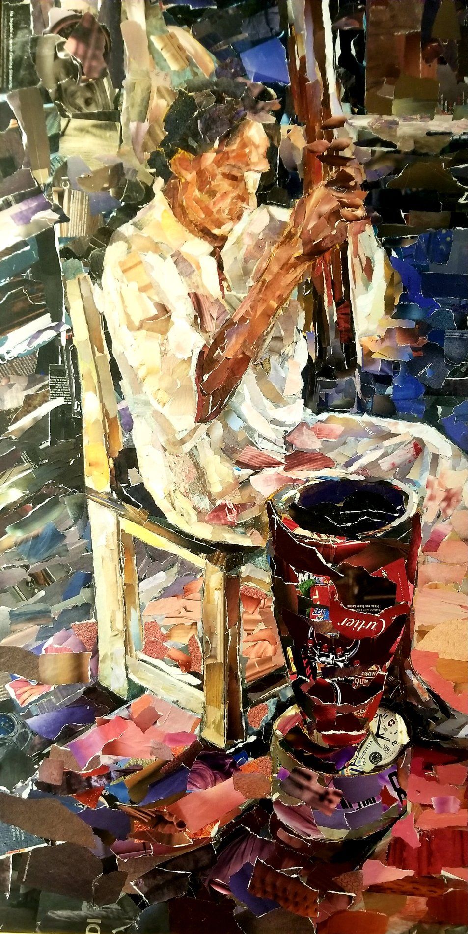 Por supuesto que puede demorar días, semanas o meses en una obra. No se trata de rasgar cualquier pedazo de papel: hay que analizar matices y gamas. No es utilizar imágenes concebidas previamente para juntarlas y lograr una pieza, sino «pintar», sin pinceles y sí con papel.