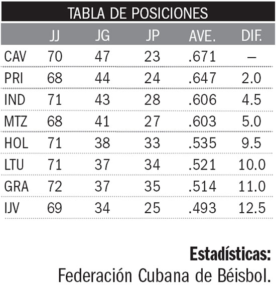 Antes de que Ciego de Ávila y sus refuerzos partieran hacia tierras quisqueyanas, el torneo aparecía con dos zonas bien definidas. Y entre una y otra, cuatro juegos y medio de separación.