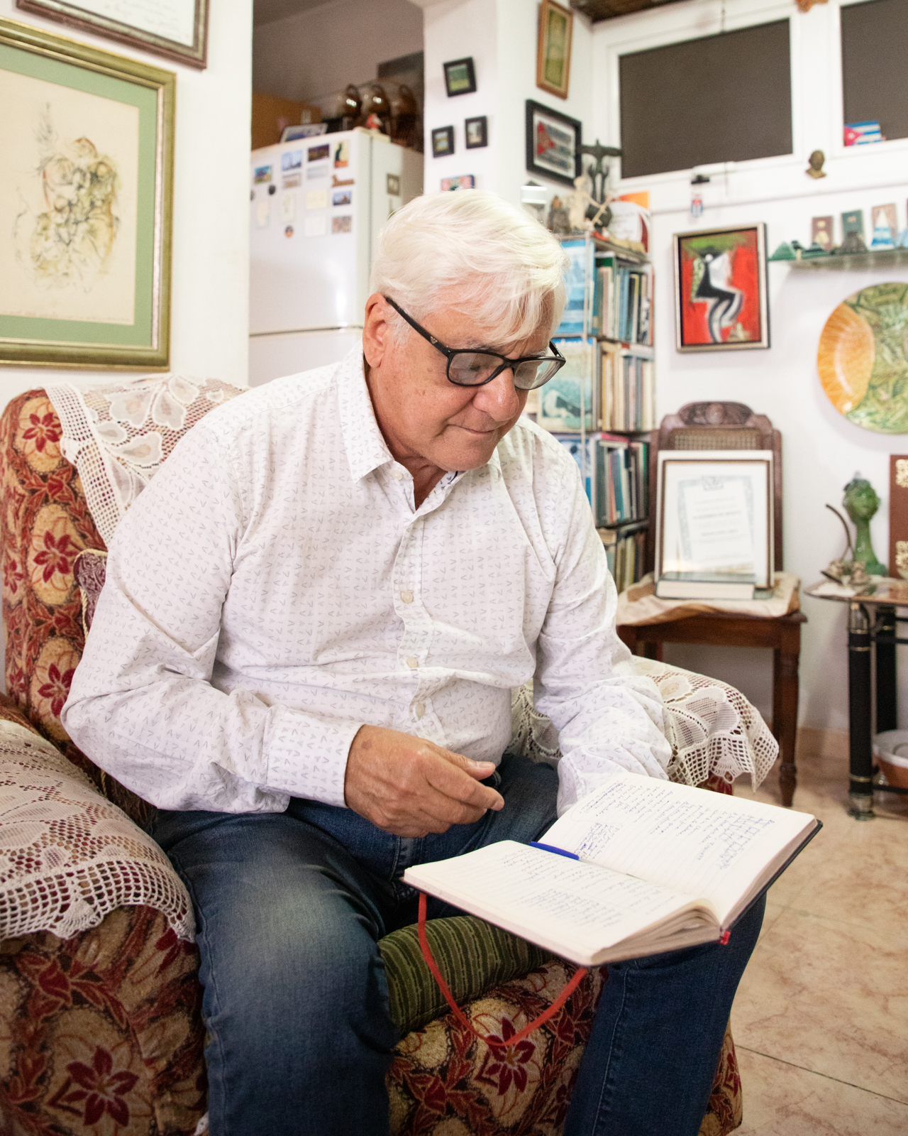 Este viaje mandé 21 cajas con toda mi biblioteca de poesía, pero previamente también doné a las bibliotecas de Casa de las Américas, Santa Clara, Fomento. Yo necesito más saber que agenciarme de las cosas, prefiero conocerlas que tenerlas.