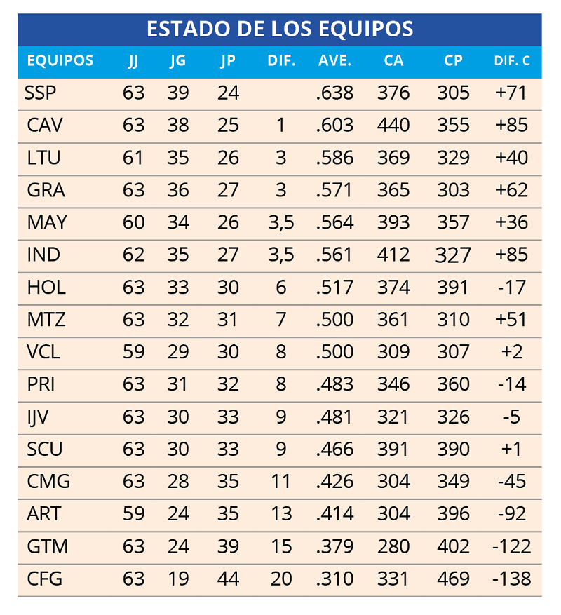 WHIP: SSP 1.55, GRA e IND 1.56 y VCL 1.58. Media: 1.69