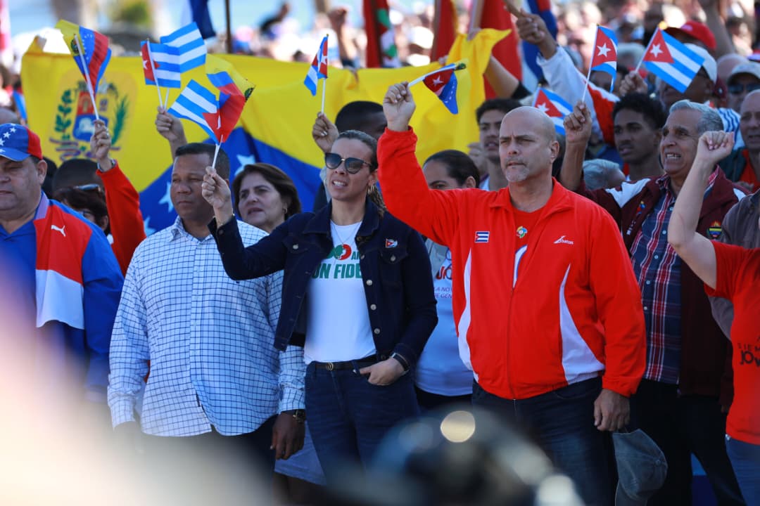 En primera línea, dijo, estuvo el pueblo cubano, con su presidente al frente, manifestándose masivamente en las calles, y el canciller Bruno Rodríguez, siendo de los primeros en expresar su apoyo. A esto se suman manifestaciones en cientos de ciudades alrededor del mundo —México, Europa, África, toda América Latina— que se están realizando en este instante.