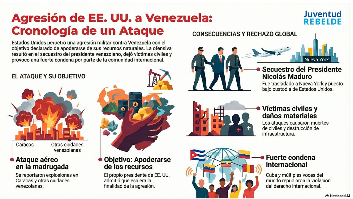 - En la madrugada de este sábado se reportaron explosiones en la capital venezolana, Caracas, además de otros territorios como Miranda, Aragua y La Guaira, sobre las dos de la mañana, hora local. Se trataba de una agresión militar de Estados Unidos contra Venezuela.