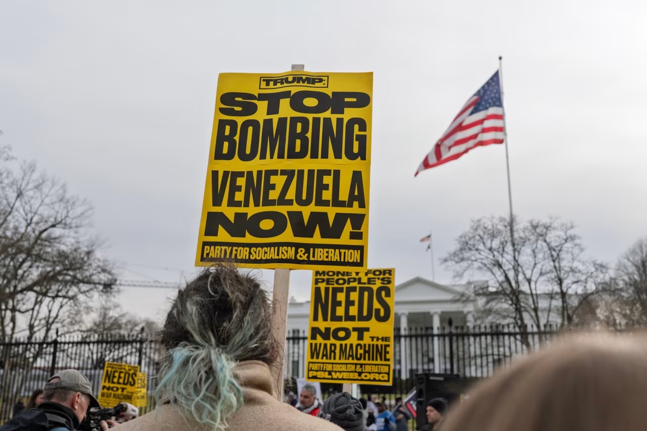 Mientras algunos venezolanos en Estados Unidos celebraron la noticia, muchos manifestantes portaban carteles con frases como «No a la guerra en Venezuela» y «EE. UU., fuera de Latinoamérica», lo que refleja la creciente frustración por la posibilidad de una guerra por el petróleo, del cual Venezuela posee las principales reservas mundiales.