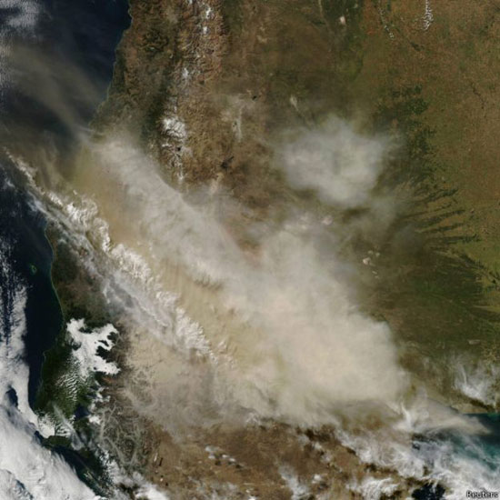 Ahora, dos días después, la nube «se está disipando en la atmósfera, va perdiendo espesor y se encuentra entre los siete y 12 kilómetros de altura», según informó la Dirección Meteorológica de Chile.