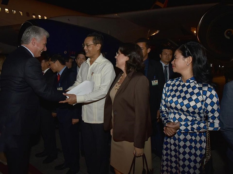 HANOI.- El Presidente de los Consejos de Estado y de Ministros, Miguel Díaz-Canel Bermúdez, llegó poco antes de la medianoche de este jueves para dar cumplimiento aquí a su visita oficial que forma parte de una gira por Rusia y cuatro países de Asia.