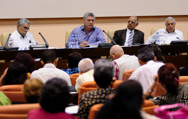 Miguel Díaz-Canel, al centro, subrayó que la enseñanza de la Historia debe contribuir a que las nuevas generaciones sientan orgullo de ser cubanos y asuman sus tareas como sus antecesores.