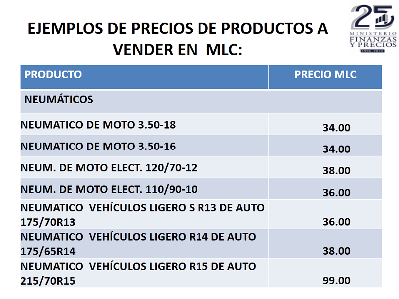 Ejemplos de precios de productos a vender en MLC