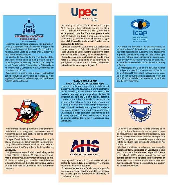 Como resultado del criminal ataque perpetrado por el gobierno de los Estados Unidos contra la hermana República Bolivariana de Venezuela, efectuado en la madrugada del 3 de enero de 2026, perdieron la vida en acciones combativas 32 cubanos, quienes cumplían misiones en representación de las Fuerzas Armadas Revolucionarias y el Ministerio del Interior, a solicitud de órganos homólogos del país sudamericano.