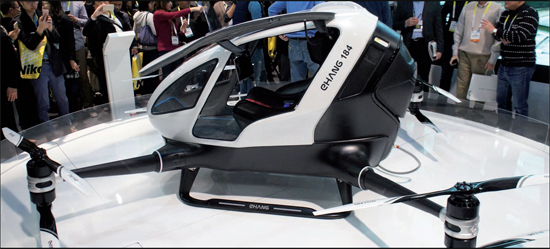 Acaso el dron estrella sería el Ehang 184, de fabricación china, capaz de volar de forma autónoma con un pasajero en su interior. ¿Se acerca el tiempo de los taxis voladores?